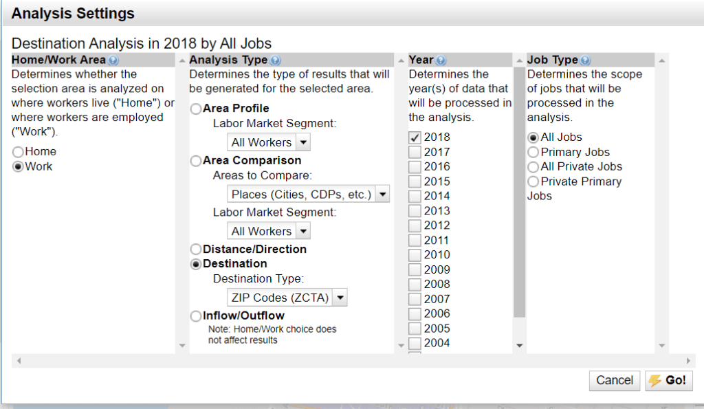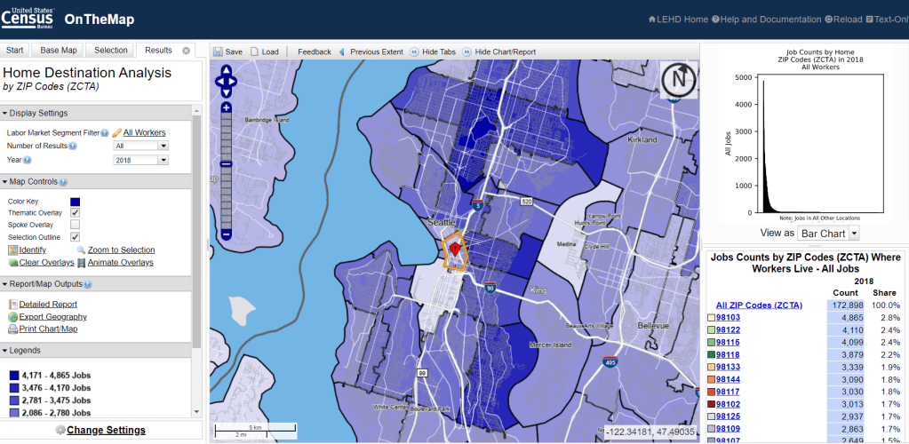 Note that In this case I had the tool organize workers’ home locations by ZIP code, but you can choose by census tract or larger areas as well, depending on how granular you want to get. You can also export an Excel file of the data, allowing for endless additional analyses.